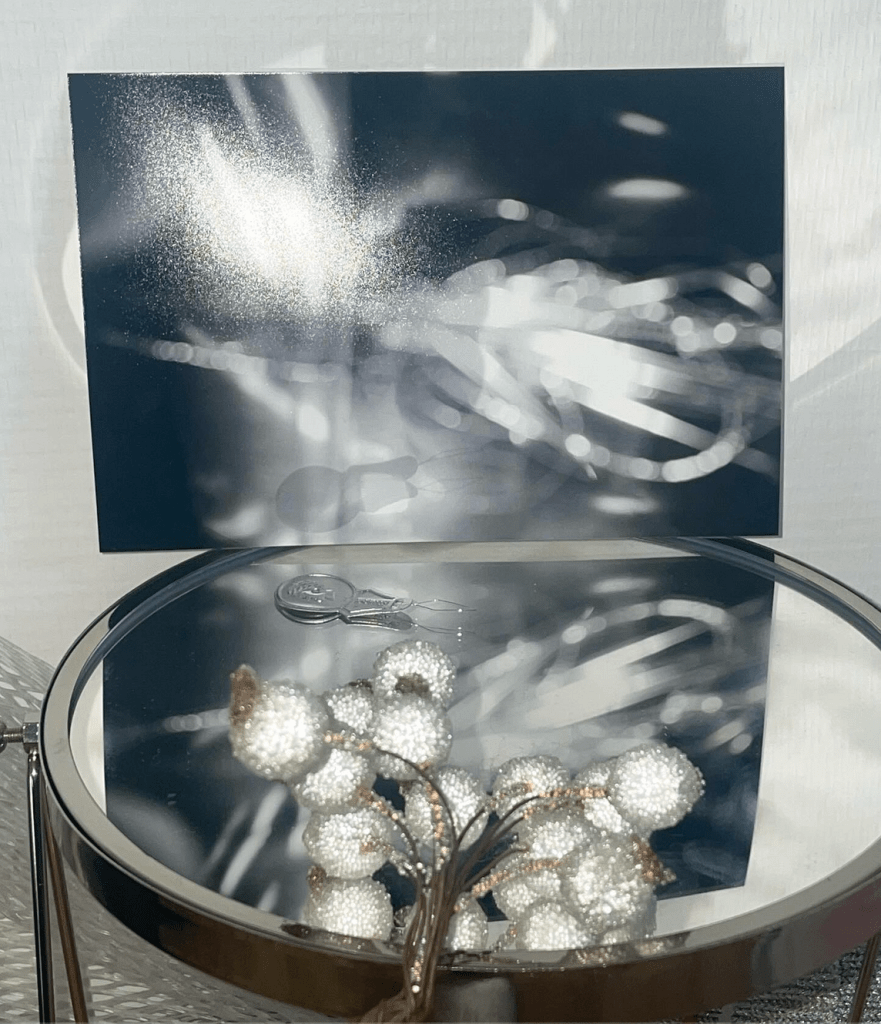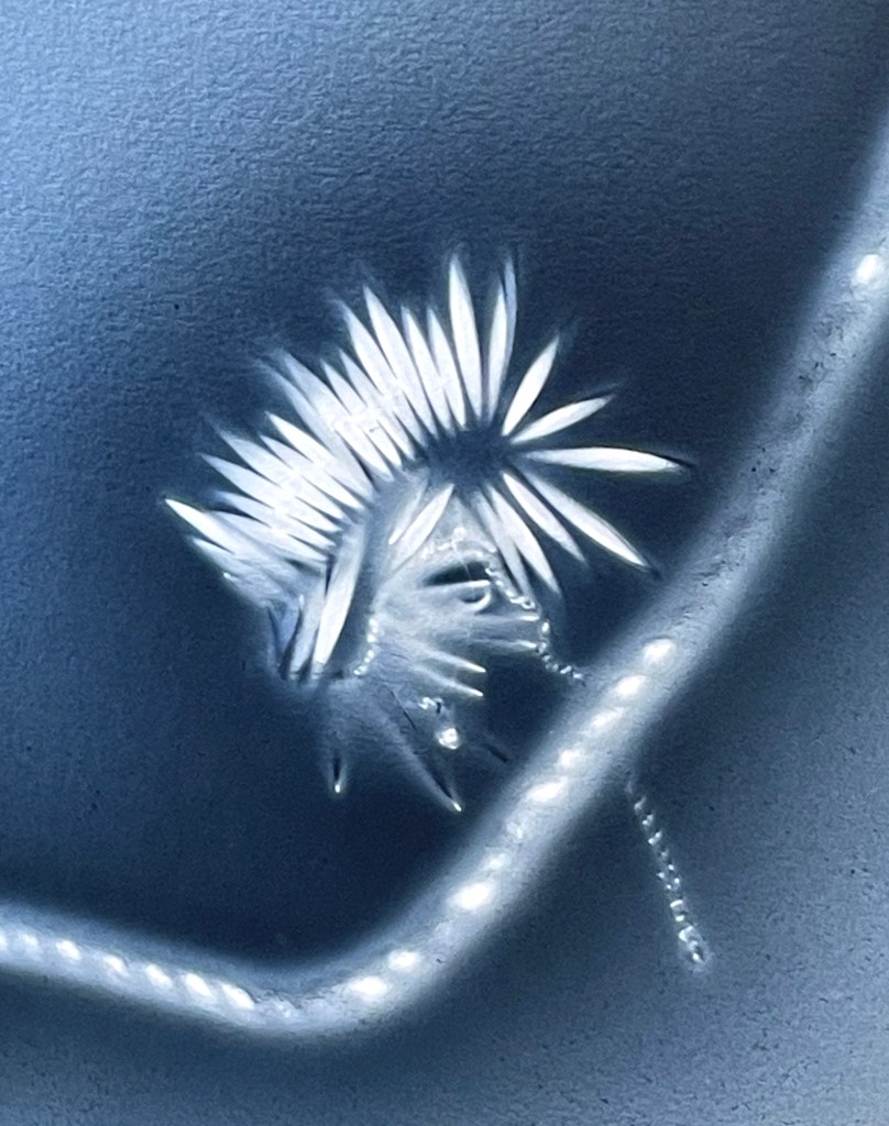 Partagé avec Vos ami(e)sPerles de fleurs gelées + l’image d’une fusion, photographie des filaments d’argent presque liquides,